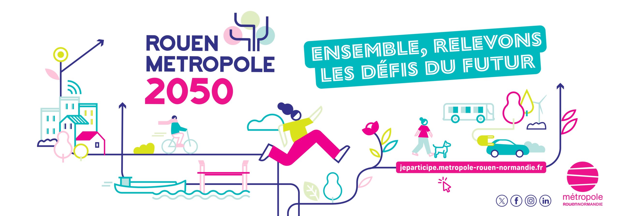 Participer à la construction du projet Rouen Métropole 2050, c’est l’occasion pour tout un chacun de se questionner sur la vie, l’organisation des activités, les ressources de notre territoire. Conscient des enjeux à horizon 2050, vous aurez l’opportunité de proposer votre vision pour le futur !