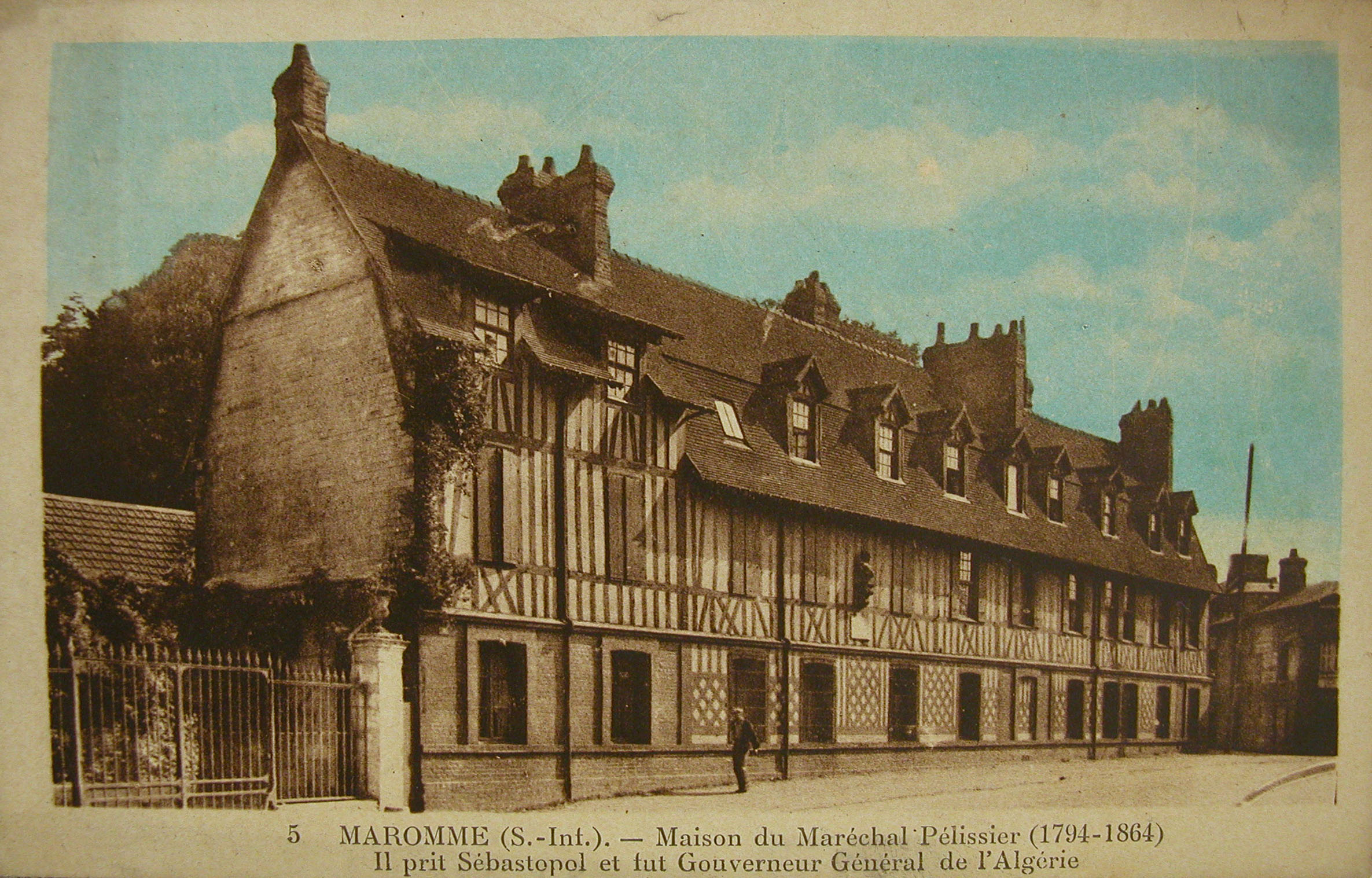 Aimable Jean-Jacques Pélissier est né le 6 novembre 1794 à Maromme, au sein de la poudrerie que dirigeait son père. Une brillante carrière dans l’armée lui permit de gravir tous les échelons jusqu’à devenir Maréchal de France. Ses victoires militaires, notamment en Algérie et en Crimée, lui valurent plusieurs distinctions dont le titre de Duc de Malakoff et le firent accéder aux plus hautes fonctions du Second Empire (sénateur, ambassadeur de France à Londres, grand chancelier de la Légion d’honneur)